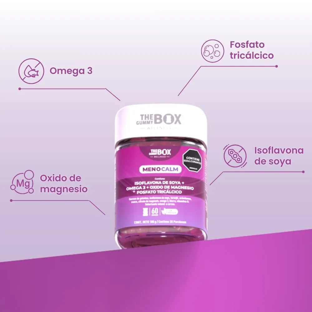 MenoCalm incluye ingredientes como el magnesio y el omega 3, que dentro de una alimentación balanceada pueden ser parte de una rutina que apoya el bienestar general. Recuerda siempre consultar con tu médico si presentas síntomas importantes.